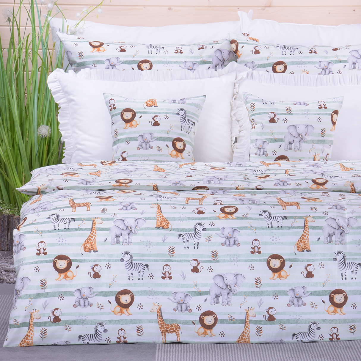 Pościel bawełniana 160x200 cm Safari z zielonymi pasami