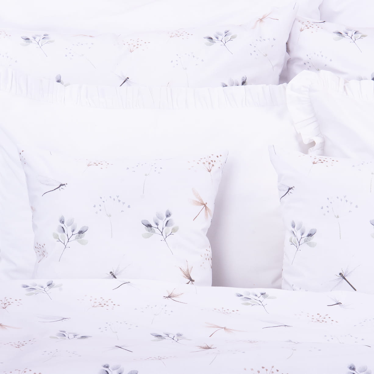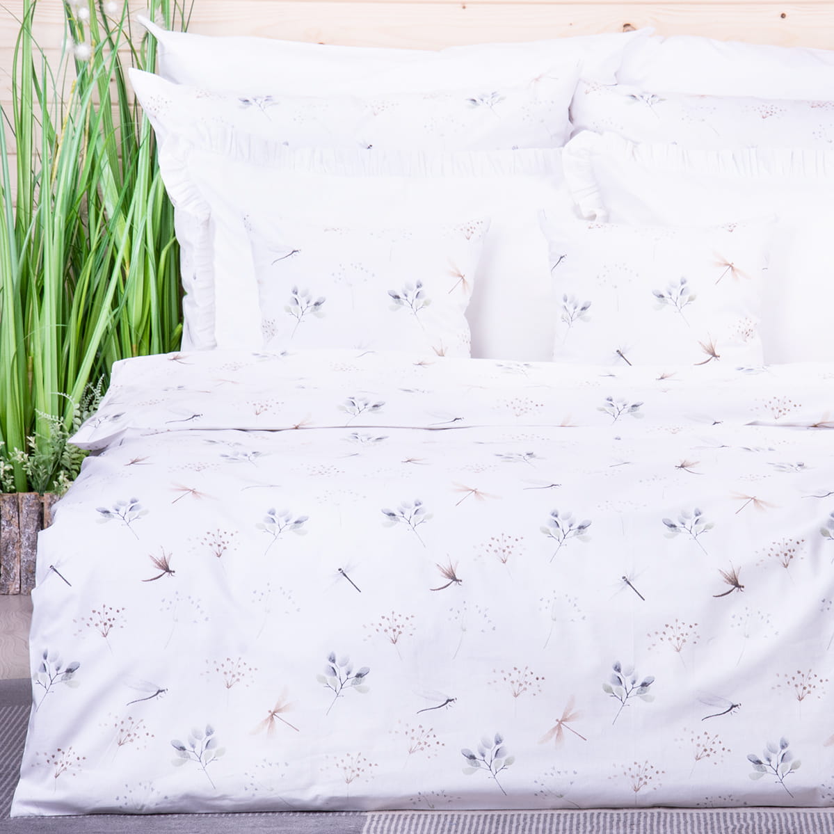 Pościel bawełniana 160x200 cm Ważki i listki